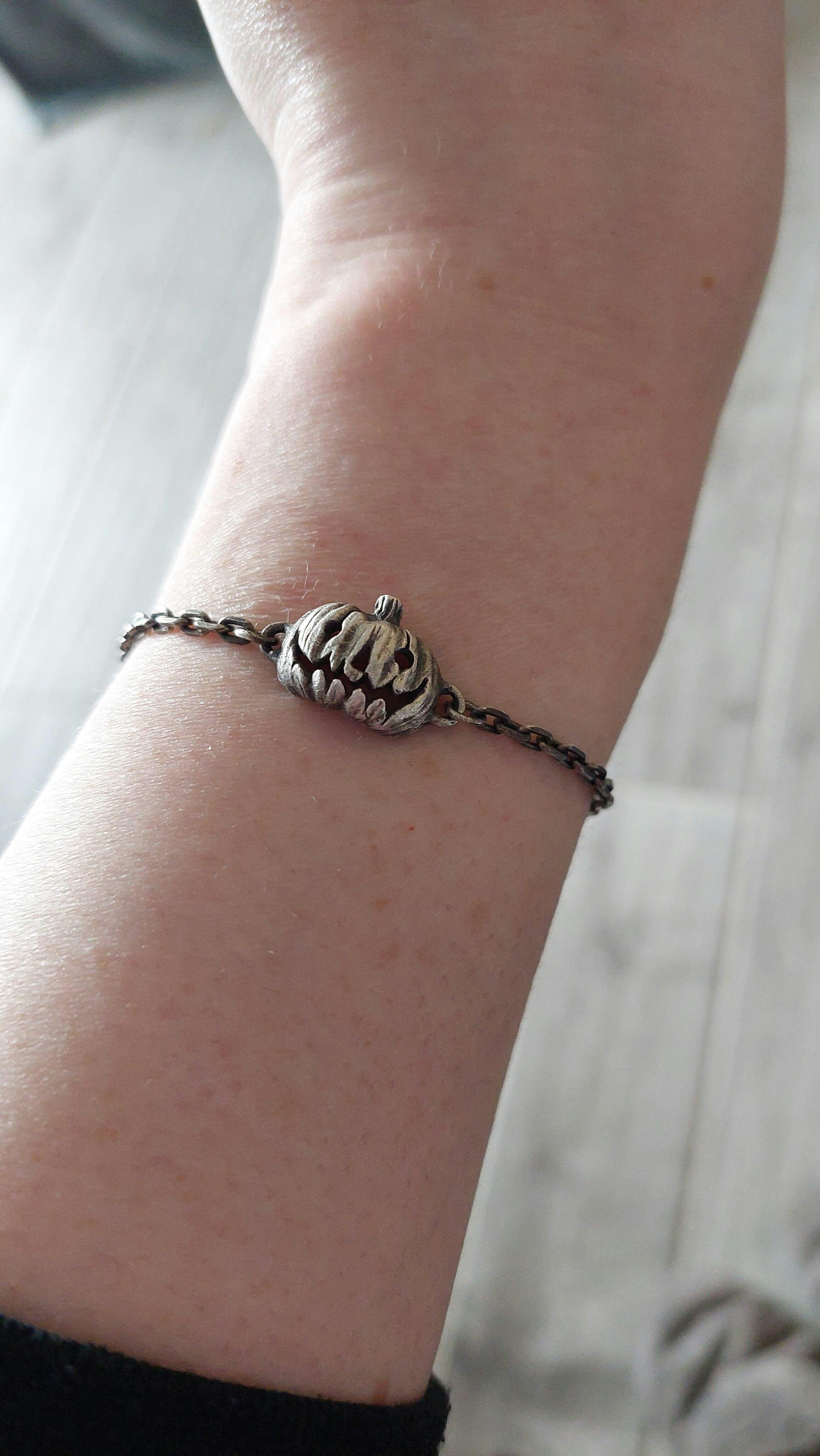 The mini classic Jack-O Pumpkin, on a dainty everyday bracelet